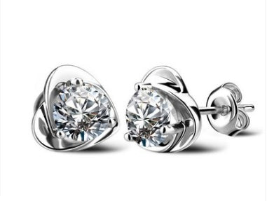 S925 sterling silver Japanese and Korean women's amethyst earrings Crown chrysanthemum dolphins zircon earrings hypoallergenic earrings